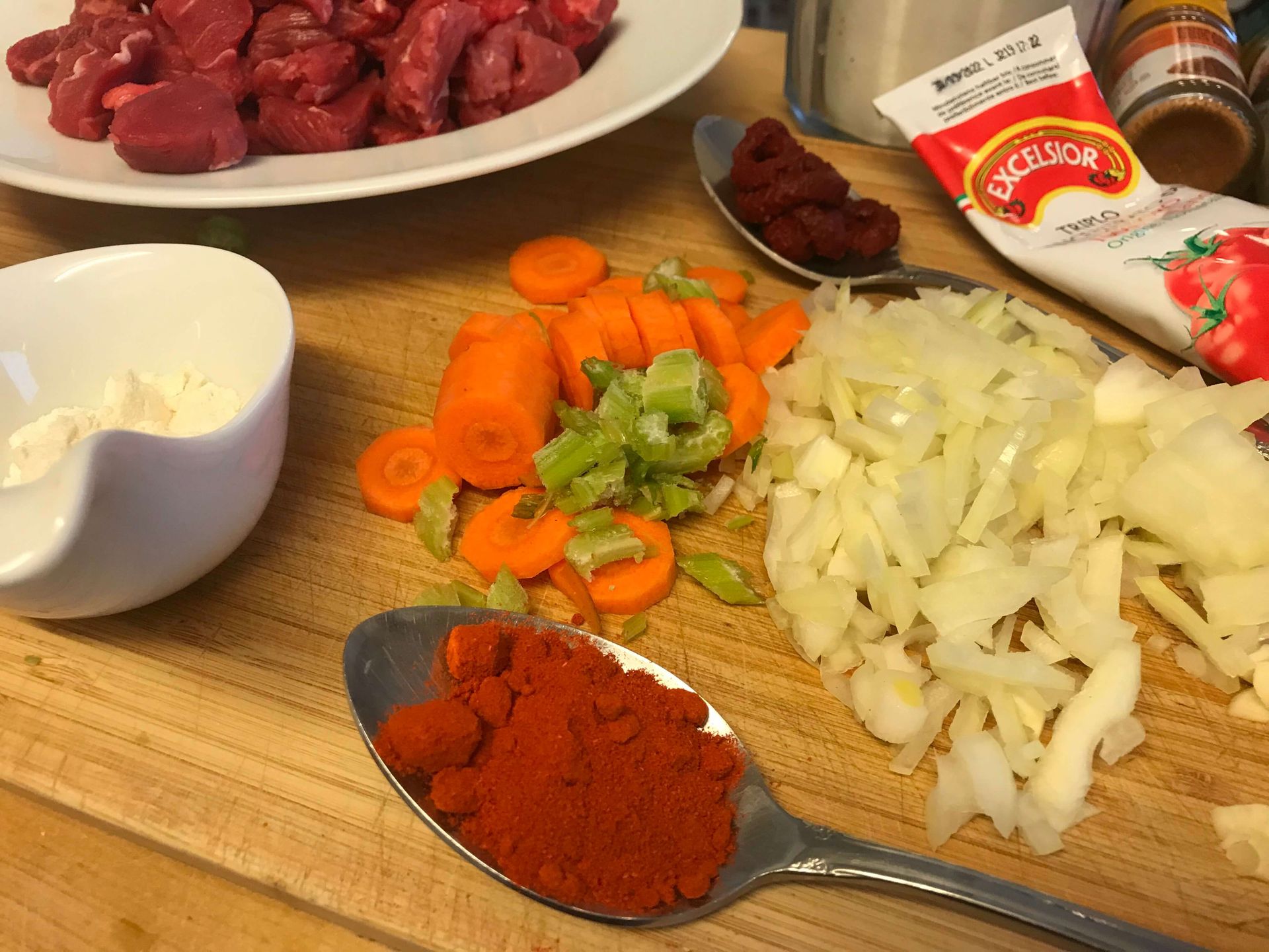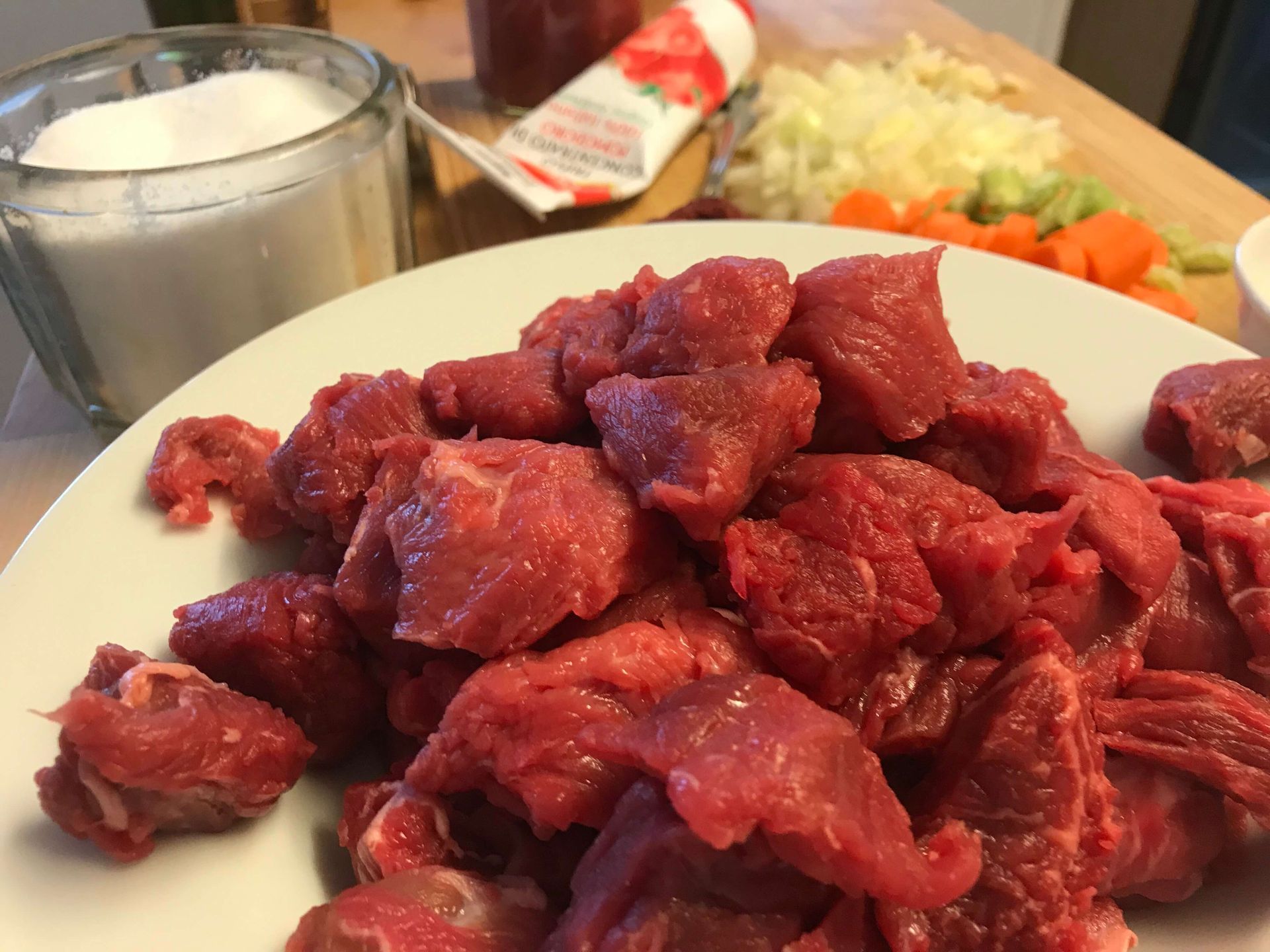 - 750 g - 1 kg de ternera (en trozos pequeños)